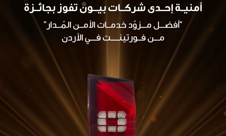 أعلنت أمنية، إحدى شركات Beyon، المزود الرائد لحلول التكنولوجيا الرقمية والمعلوماتية في الأردن، عن حصولها على جائزة أفضل مزود خدمات الأمن المُدار (MSSP) لعام 2025 في الأردنِ من شركة فورتينت العالمية.