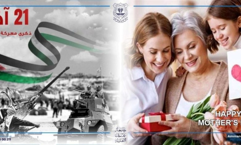عمان الأهلية تُهنّىء بذكرى الكرامة وعيد الأم