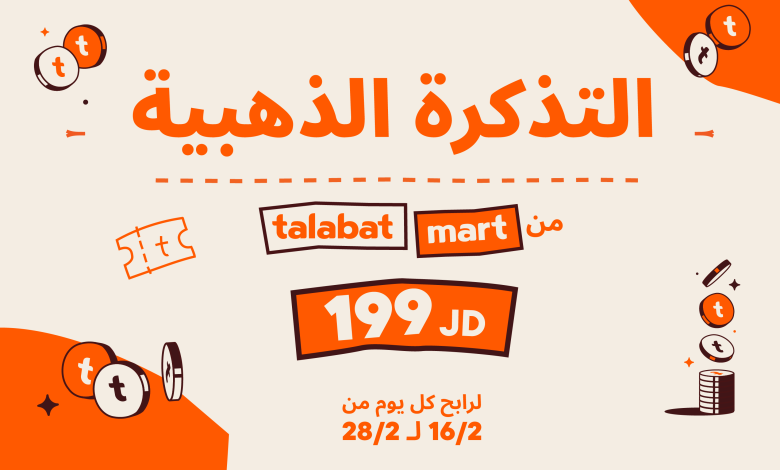 (عمّان، الأردن – 10 شباط 2025): أعلنت “طلبات” الأردن، المنصة الرائدة وشريك الحياة اليومي في مجال خدمات طلب وتوصيل الطعام ومواد البقالة في الشرق الأوسط وشمال إفريقيا، عن حملة مكافآت مميزة تستمر من 16 إلى 28 شباط الجاري، وتفاجئ بموجبها 13 فائزاً من عملائها الذين أجروا طلباتهم عبر “طلبات مارت” خلال هذه الفترة بمنحهم قسيمة شراء مجانية بقيمة 199 دينار مخبأة داخل مشترياتهم، بواقع قسيمة لفائز واحد يومياً.