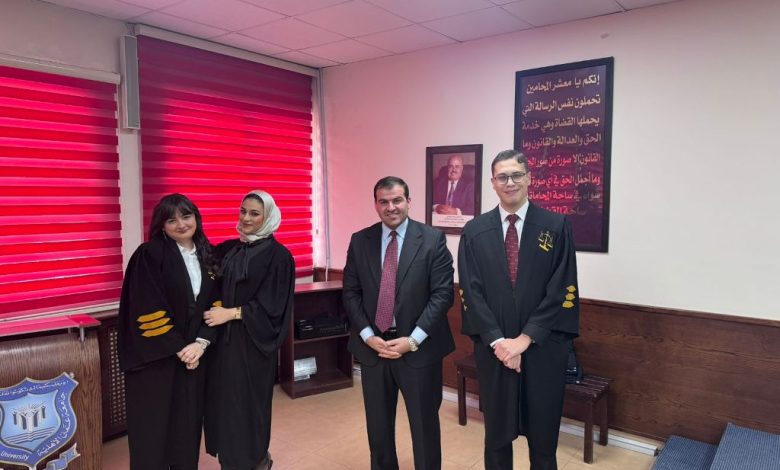 وجاء هذا الإنجاز بدعم مباشر من عميد كلية الحقوق الأستاذ الدكتور أسيد الذنيبات، وبمشاركة الطلبة جود الشخيبي، وأنس قطيشات، وسارة النسور، الذين أظهروا مستوىً متقدمًا من الكفاءة القانونية والمهارات التطبيقية في المرافعة والتحليل القانوني.