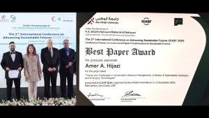 حصل الدكتور عامر حجازي، من كلية الهندسة في جامعة عمان الأهلية، على المركز الأول في جائزة أفضل ورقة بحثية خلال المؤتمر الدولي الثاني لتطوير مستقبل مستدام (ICASF 2024)، الذي عُقد في جامعة أبو ظبي تحت رعاية معالي الشيخ نهيان مبارك آل نهيان، وزير التسامح والتعايش.