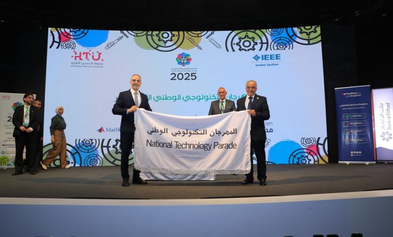 تسلّم الأستاذ الدكتور ساري حمدان، رئيس جامعة عمان الأهلية، راية المهرجان التكنولوجي الوطني لعام 2026، وذلك خلال حفل اختتام النسخة الثانية عشرة من المهرجان، الذي استضافته جامعة الحسين التقنية.