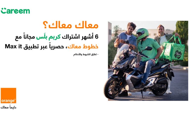 وفي خطوة تعكس تركيز أورنج على تقديم عروض نوعية لزبائنها، منحت الشركة 6 أشهر من خدمة Careem Plus حصرياً لخطوط “معاك” وخطوط “الزوار” عبر تطبيق Max it، ما يتيح لهم الاستمتاع بمجموعة من المزايا المصممة لتحسين تجربة النقل والتوصيل اليومية، وبما يمكّنهم من الاستفادة من الامتيازات المخصصة لهم ضمن باقة عروض Careem Plus المميزة، الأمر الذي يعزز نمط حياتهم الرقمي ويمنحهم تجربة أكثر سلاسة وراحة في حياتهم اليومية.