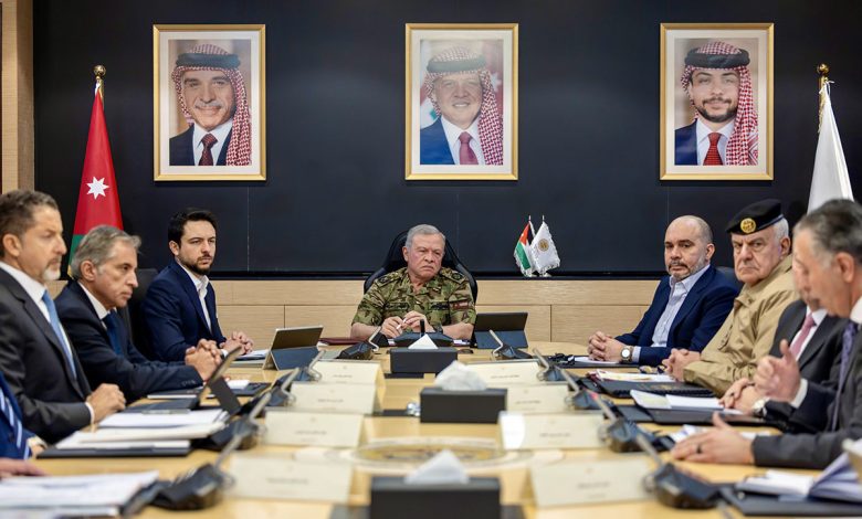 وأعرب جلالة الملك عن تقديره للجهود التي تبذلها جميع المؤسسات والأجهزة لضمان سلامة الأردنيين والدفاع عن الوطن، مؤكدا أهمية إدامة التنسيق بين المعنيين.