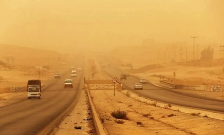 اغلاق الطريق الصحراوي بالاتجاهين بسبب الغبار