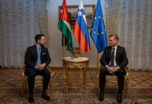 مندوبا عن جلالة الملك عبدﷲ الثاني، عقد سمو الأمير الحسين بن عبدﷲ الثاني ولي العهد، في العاصمة السلوفينية ليوبليانا، اليوم الأحد، لقاء مع رئيس الوزراء السلوفيني الدكتور روبرت غولوب، ركزا فيه على سبل تطوير التعاون بين البلدين الصديقين.