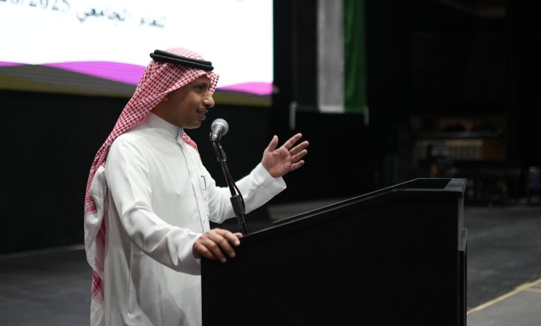 وتخلل اللقاء كلمة للطالب عمر العنزي نيابة عن زملائه المستجدين عبّر فيها عن شكرهم واعتزازهم بالانتماء لهذا الصرح العلمي.