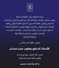 أسرة جامعة عمان الأهلية تنعي المرحوم أ.د. يعقوب حيدر حمدان