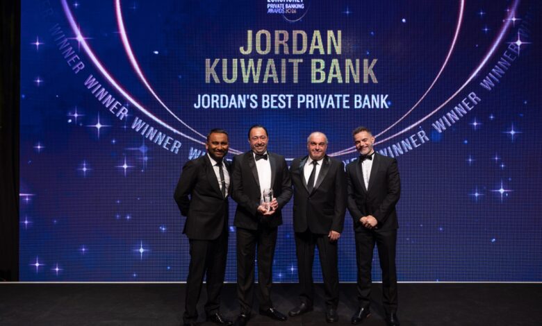 البنك الأردني الكويتي يحصد جائزة “أفضل بنك للخدمات المصرفية الخاصة في الأردن” للمرة الرابعة على التواليالبنك الأردني الكويتي يحصد جائزة “أفضل بنك للخدمات المصرفية الخاصة في الأردن” للمرة الرابعة على التوالي